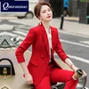Costume deux pièces rouge pour femmes, pantalon de travail formel de style britannique, nouvelle mode printemps et automne 2021, hj