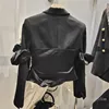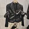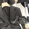Blazer court en Satin pour femmes, nouvelle collection printemps 2022, manteau de costume à revers, plissé, taille serrée, Slim Fit, Fashiona Lady Street Top noir