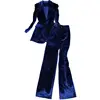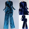 Costume pantalon à la mode pour femme, ensemble deux pièces, velours vert et or vert et pantalon à jambes larges, nouvelle collection, automne/hiver décontracté