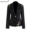 Harley fashion – Blazer élégant pour femme, avec bouton unique, maille, Patchwork, épingle, Slim, de qualité, noir