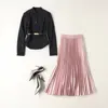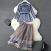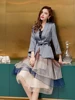 Blazer à lacets crantés pour femmes, élégant, mode printemps automne, costume mi long, jupe en Organza à volants, ensemble, tenue de fête au bureau