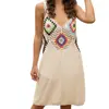 Robe de plage tricotée à la mode, ajourée, Patchwork, col en V, Cover up de plage, robe de plage pour femmes