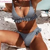 2022 Sexy Noir et Blanc À Carreaux Imprimé Taille Haute Bikini Maillot De Bain femme Bikini 2 pièces Ensemble Dames Plage Maillot De Bain String