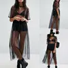 Maillot de bain transparent en maille pour femmes, avec taille élastique, transparent, à manches courtes, col rond, pour l'été