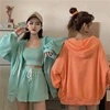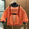 Veste à capuche manches longues, manteau, short de motard en coton, ensemble de 3 pièces pour femmes, vêtements de Sport, survêtement, printemps, 2021