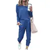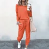 Vêtements d'automne pour femmes, col rond, ample, couleur unie, manches longues, décontracté, tenue 2 pièces, pantalon et haut pour femmes, nouvelle collection 2020