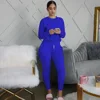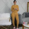 Ensemble de survêtements 2 pièces pour femmes, 2020, couleur unie, pull à manches longues, T shirt taille haute, pantalons longs à lacets, à la mode