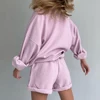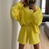 Survêtement pour femmes, ensemble 2 pièces décontracté, ample, col rond, Sweat shirt + short de sport, ensemble deux pièces, couleur unie