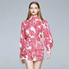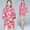 Ensemble short de vacances imprimé rétro pour femmes, chemise à manches lanternes, avec ceinture de poche, Mini pantalon, 2 pièces