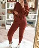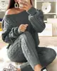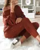 Ensemble pull et pantalon décontracté pour femme, tricot chaud, col incliné, manches longues, couleur unie, côtelé, mode hiver 2020