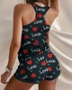 Ensemble débardeur et Short pour Femme, tenue décontractée avec imprimé cœur, pour la saint valentin, nouvelle collection printemps été 2021