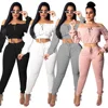 Ensemble 2 pièces de survêtement pour femmes, Sexy, épaules dénudées, T shirt à lacets, pantalon Long, Sp656