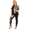 Costume de Camouflage pour femme, ensemble hauts, T Shirt, Long pantalon, poches, 5XL, D30