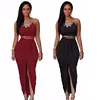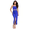 SEBOWEL — Ensemble deux pièces avec jupe fendue et haut court pour femmes, vêtements d'été avec bas plissé, et débardeur moulant à bretelles, monochrome, pour soirées et fêtes en discothèques, collection 2020