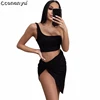 Top asymétrique épaule dénudée pour femmes, tenue sexy, ensemble de 2 pièces pour dames, jupe irrégulière, d'été, tendance 2019