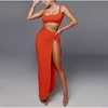 NewAsia – ensemble 2 pièces Sexy pour femme, haut court torsadé, jupe longue fendue sur le côté, grande taille, tenue de Club, 2021