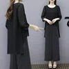 Ensemble pantalon femme en mousseline de soie, tenue pour mère de la mariée, tenue formelle d'invité de mariage, rayé, jambes larges, amples, 3 pièces, 2019