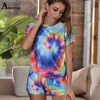 Aumsnug – ensemble deux pièces pour femme, tenue élégante, teinture par nouage, décontracté, ample, sport, loisirs, maison, été, 2020