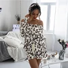 Survêtement deux pièces pour femme, T shirt à manches longues imprimé léopard + cordon de serrage, ensemble automne décontracté