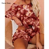 Vêtement imprimé petite marguerite pour femme, t shirt à manches longues et short à cordon de serrage, ensemble deux pièces, costume pour femme survêtement de sport