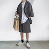 Ensemble veste et Short de Style coréen pour homme, vêtements surdimensionnés, couleur unie, mince, manches courtes, poche unique, longueur aux genoux, été