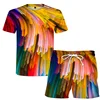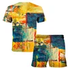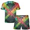 Costume de sport à motif géométrique pour hommes, T shirt à manches courtes, 2 shorts, décontracté, à la mode, nouvelle collection été