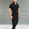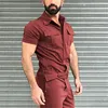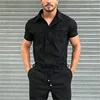 Combinaison Cargo à manches courtes pour homme, vêtement de rue décontracté, salopette de travail de base, couleur unie, à la mode, automne