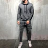 Survêtement 2 pièces pour hommes, nouvelle marque, automne hiver, ensemble, sweat à capuche + pantalon à cordon de serrage, Patchwork à rayures, Bigsweety