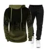 Sweat à capuche imprimé à l'encre pour homme, ensemble de 2 pièces, à manches longues, avec cordon de serrage, décontracté, absorbe la sueur, survêtement pour un usage quotidien