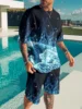 Ensemble de survêtement bleu pour hommes et femmes, t shirt à manches courtes, Short de marque, à la mode, deux pièces, été, 2021