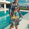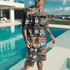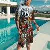 T Shirt manches courtes pour hommes, 2 pièces, ample et surdimensionné, à la mode, avec impression 3D