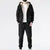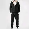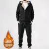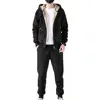 Ensemble de sport élégant pour hommes, couleur unie, cordon thermique, fermeture éclair, survêtement, sweat à capuche, costume, 2 pièces/ensemble
