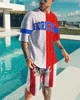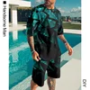 Survêtement décontracté imprimé 3D pour homme, ensemble 2 pièces, vert, carré, T Shirt à manches courtes + Short de sport, été 2021