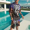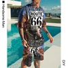 Route 66 – costume décontracté pour hommes, T shirt à manches courtes + Short surdimensionné, de même couleur, nouvelle collection été