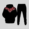 Sweat shirt à capuche et pantalon pour hommes, imprimé de fleurs de Rose, tendance, marque, ensembles de vêtements de sport décontractés pour Couple, printemps et automne