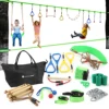 Course d'obstacle suspendue en ligne Ninja Warrior, pour les activités des enfants, Kit de Slackline de 56 pieds, équipement d'entraînement en corde, bagues de gymnastique vertes