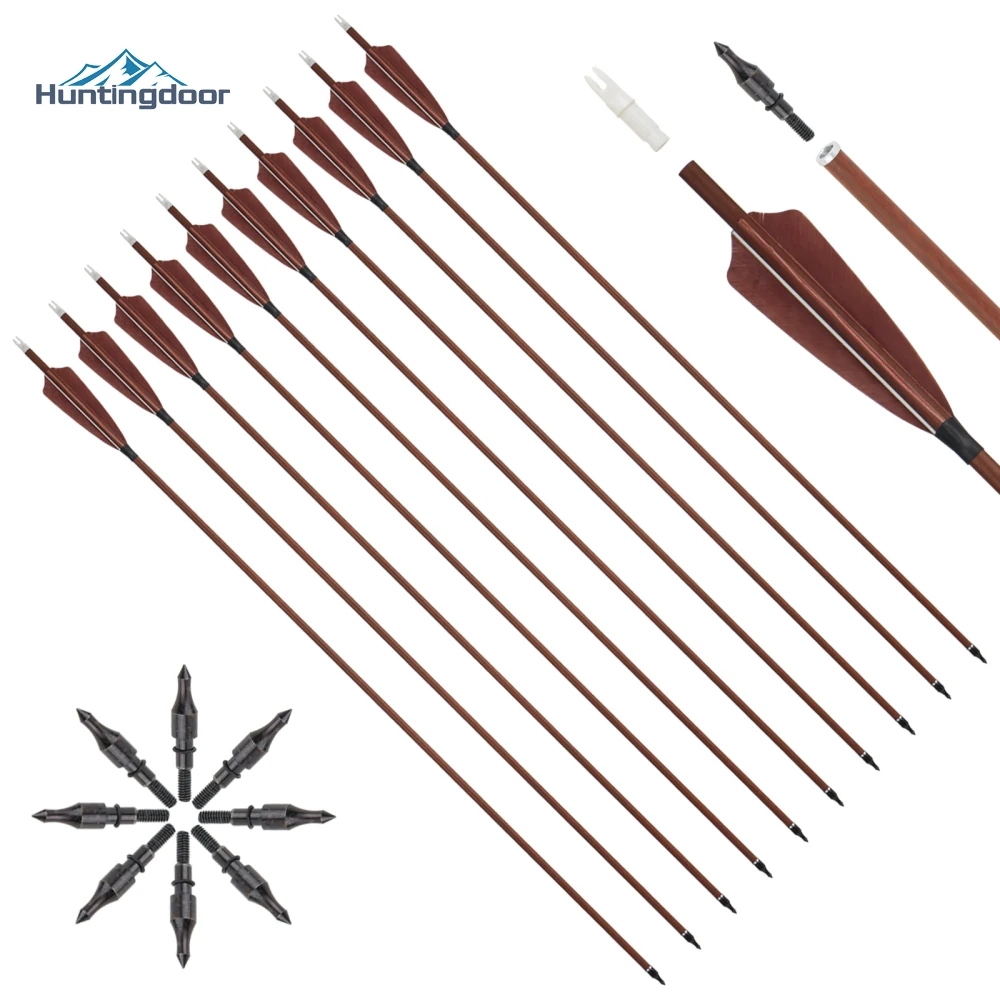 Flèches de chasse en carbone pur, 32.5 pouces, colonne vertébrale 400, vraie plume marron, pour tir à l'arc Recurve/traditionnel, nouvelle collection