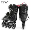 Baskets de Hockey à roulettes pour hommes et femmes, chaussures de vitesse en ligne, patins à roulettes pour adultes, noir et blanc, 1 ligne, 4 roues d'entraînement