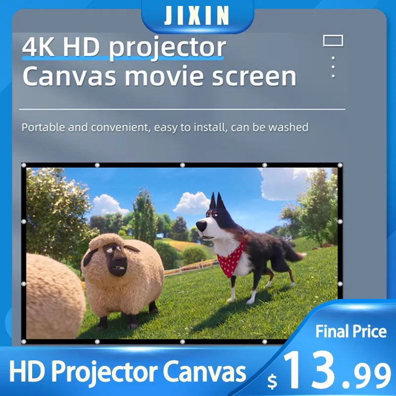 Écran de cinéma en toile 4K HD, 60 200 pouces, Installation sans poinçon, Portable, extérieur, bureau, 16:9