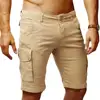 Short en coton pour hommes, poches avec fermeture éclair, couleur unie, confortable, décontracté, boutons, pantalon de plage, vêtements multiples