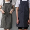 Tablier d'art en tissu Simple, couleur Pure, japonais coréen, vêtements de travail de cuisine étanches à l'huile pour hommes et femmes