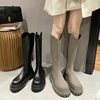 Bottes gothiques à semelles épaisses pour femmes, chaussures longues hautes, confortables et légères, décontractées, nouvelle collection automne et hiver 2021