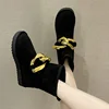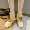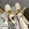 Bottes de neige plates à semelles épaisses pour femme, bottines à la mode, avec chaîne dorée, décoratives, chaudes, en peluche, pour l'extérieur, collection hiver 2021