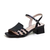 Sandales en cuir pu pour femmes, de haute qualité, vert, bout ouvert, à talons carrés, décontractées