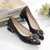 Chaussures en cuir Pu Beige à talons bas de 3cm pour femmes, chaussures classiques noires à enfiler pour boîte de nuit et fête