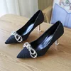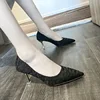 Chaussures à Talons aiguilles bleu cristal pour Femmes, chaussures à Talons Hauts, confortables, pour fête, décontractées, noires