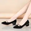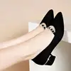 Escarpins à bout pointu à talons carrés pour femmes, chaussures de soirée décontractées et douces, noir et vert