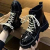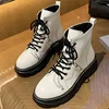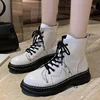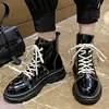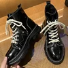 Bottines en cuir PU pour femmes, chaussures confortables à la mode, baskets à bout rond, grande taille, à lacets