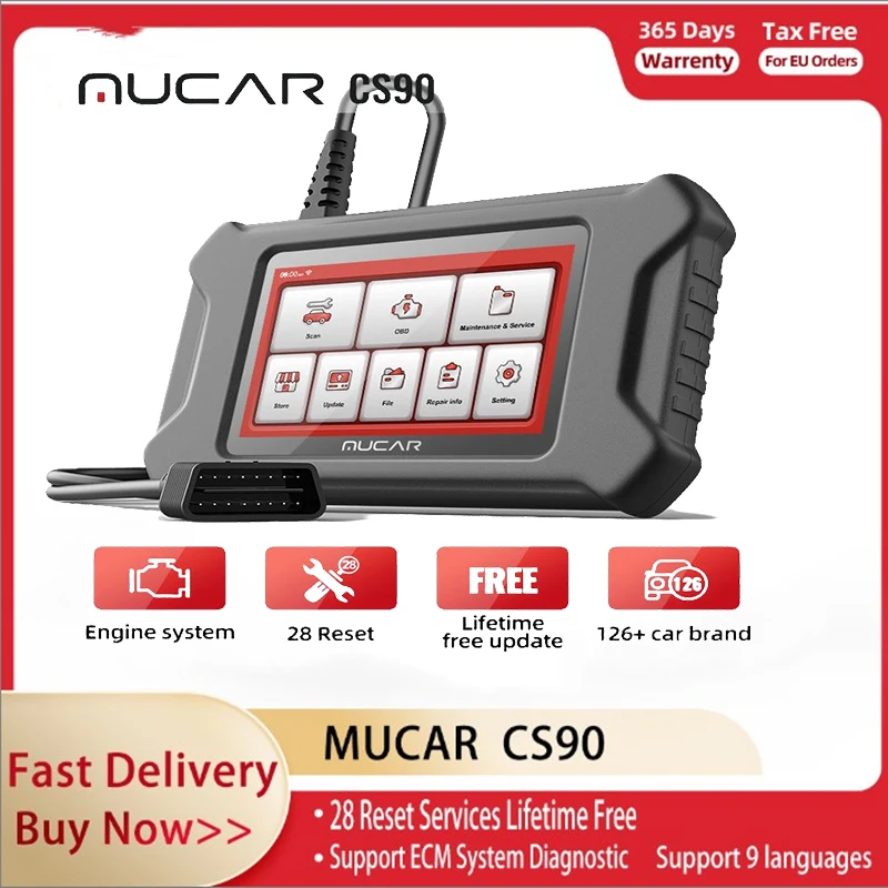 【BFAE15】Professionnel MUCAR CS90 OBD2 Tout Outil De Diagnostic De Voiture 28 Réinitialise Code Pin Lecteur Plein OBD 2 Fonction Gratuite À Vie Sgc