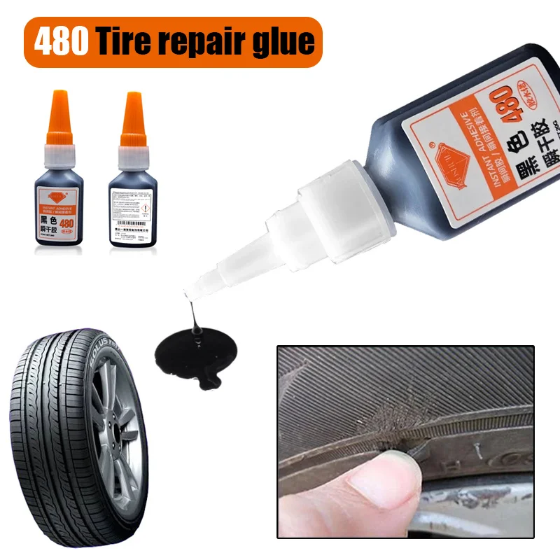 Colle forte noire pour réparation rapide de pneus de voiture, universelle, camion, moto, vélo, crevaison de chambre à air, 20g, 480